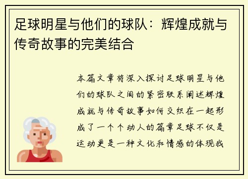 在当今社会,足球不仅是一项运动,更是一种文化现象。亿万粉丝追随的足球明星们,他们背后的故事与荣耀,构成了一个丰富而动人的传奇。从青涩少年到世界巨星,这些球员身上承载的不仅是个人的努力与汗水,还有无数人为之欢呼、泪流满面的情感。在这篇文章中,我们将从四个方面深入探讨这些足球明星的成长历程、职业生涯、社会影响及他们对年轻一代的激励作用,以期揭示出隐藏在光鲜外表下更深层次的故事和荣耀。 1、成就辉煌的...