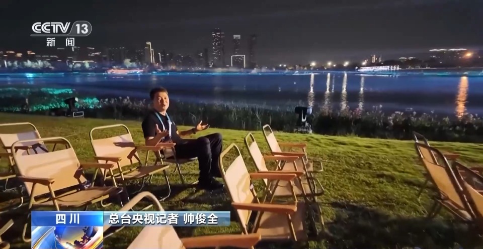 总台央视记者 帅俊全:看完一个多小时的开幕式彩排之后,我最大的感受就是真的体现了它的口号“运动无限 气象万千”。看到这些座位了吗?现场的很多观众可以在湖水两侧的草坪上坐下来,像露营一样,以一种比较放松的心态来观看这场特别的开幕式。